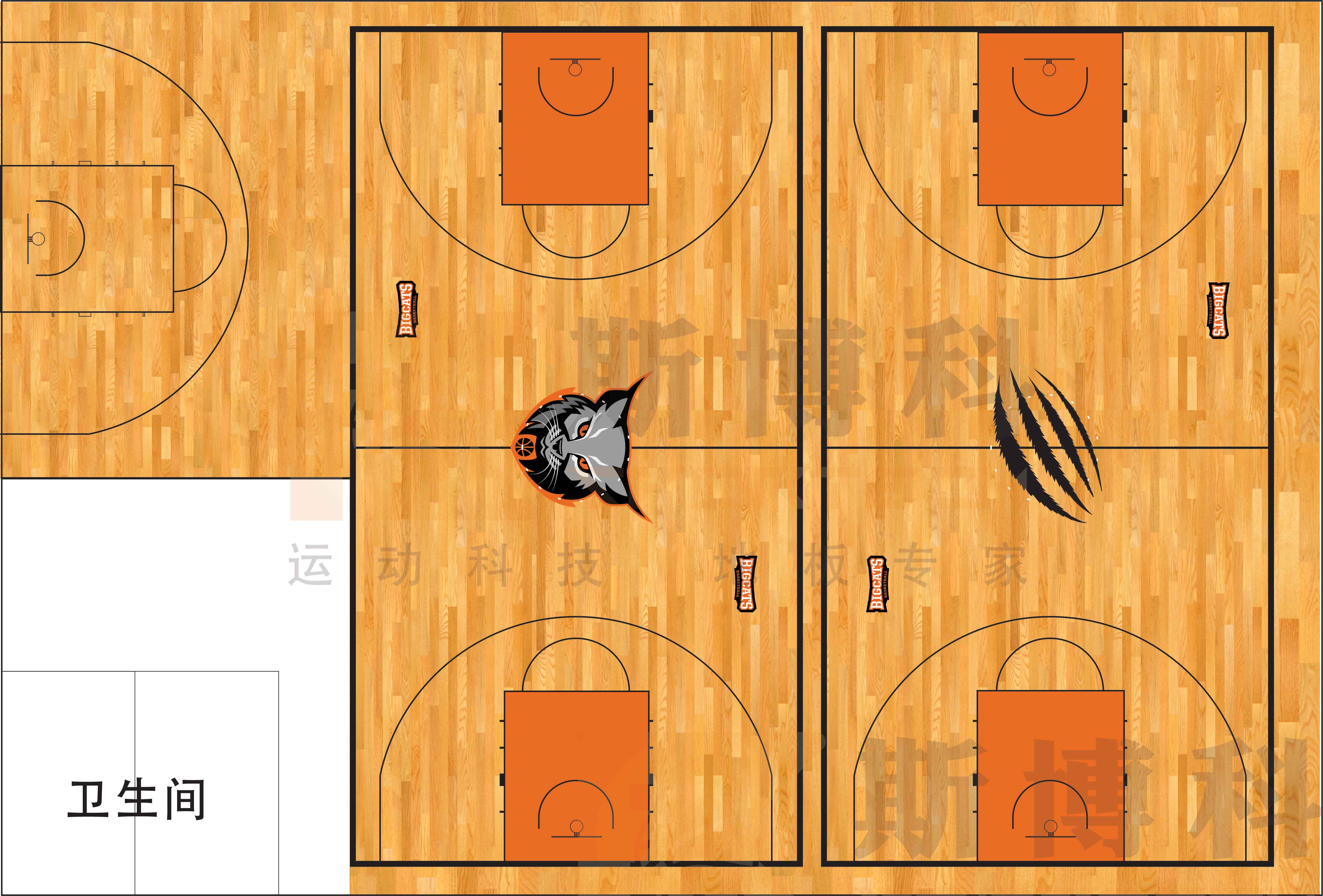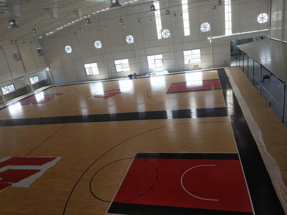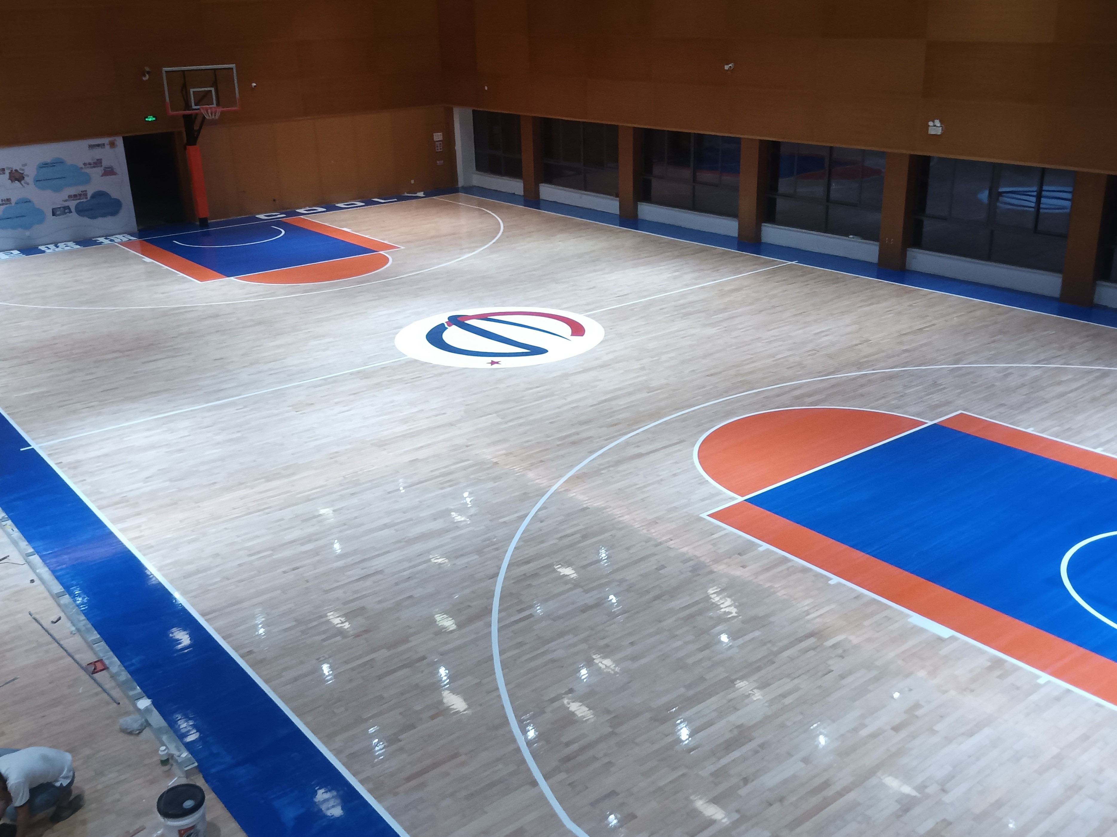 • 東莞市技師學院木地板涂刷彩漆及logo繪制-斯博科體育